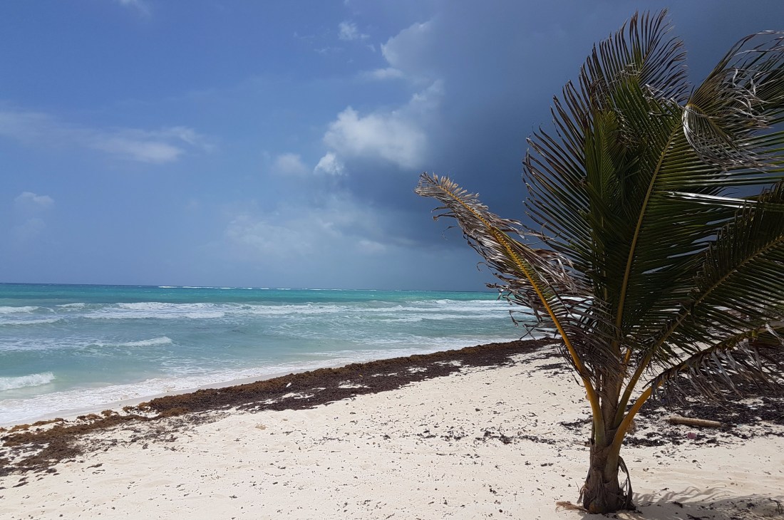 Ankommen an der Karibikküste Mexikos ist vor allem eines: feucht! Jeder, der hier aus dem Flughafengebäude tritt und gegen die sprichwörtliche Wand läuft, die hier das charakteristische Karibik-Klima ausmacht, beginnt das Wort „schwül“ ganz neu zu definieren. Willkommen in einem Klima, in welchem nasse Haare trotz Temperaturen jenseits der 30°C nicht an der Luft trocknen und wo Kamera-Linsen beschlagen, sobald man sie auspackt. Klimatisch ist die Karibik-Region Mexikos von Anfang an unfassbar anstrengend und es dauert eine ganze Weile bis man beginnt sich einigermaßen zu akklimatisieren.