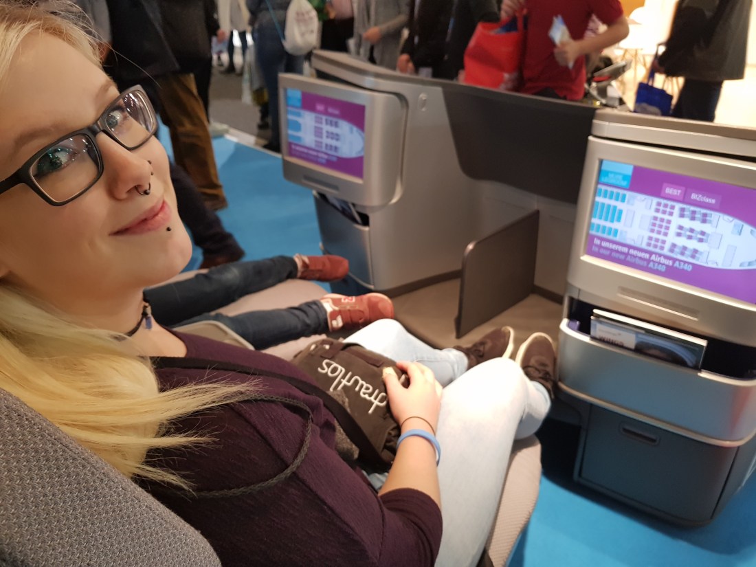 Die Beinfreiheit hat nichts, aber auch gar nichts mit dem zu tun, was wir als Ryanair-Touristen gewohnt sind. Man kann seinen Sitz zu einem flachen Bett ausfahren, dabei auf einem 15-Zoll-Display Filme schauen und sich per Massagefunktion den Rücken massieren lassen. Darüberhinaus kann man die Zeit vor dem Flug in einer Business-Class-Lounge verbringen, die neben gemütlichen Sitzmöglichkeiten auch ein umfangreiches Gratis-Buffet mit großer Bar bietet. So geht es schon deutlich entspannter auf Reise, das gesamte Erlebnis ist überhaupt nicht vergleichbar mit dem Stress, dem man in der engen Economy Class ausgesetzt ist. Dafür kostet der Spaß eben in der Regel auch mehrere tausend Euro, beziehungsweise innereuropäisch mehrere hundert Euro.