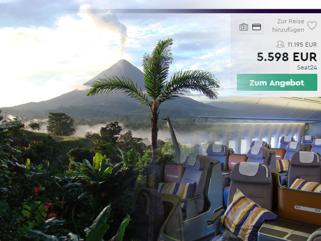 Wer als Normalo in den gängigen Flugsuchmaschinen nach Business Class-Flügen sucht, wird – wenn es sich nicht gerade um Angebote handelt – schnell vom Schlag getroffen. Unser OneWay-Flug von unserem Heimat-Airport Luxemburg über Frankfurt nach San Jose, Costa Rica hätte uns regulär (zum Buchungszeitpunkt) unglaubliche 5598 Euro pro Person gekostet, also 11.195 Euro für uns beide.