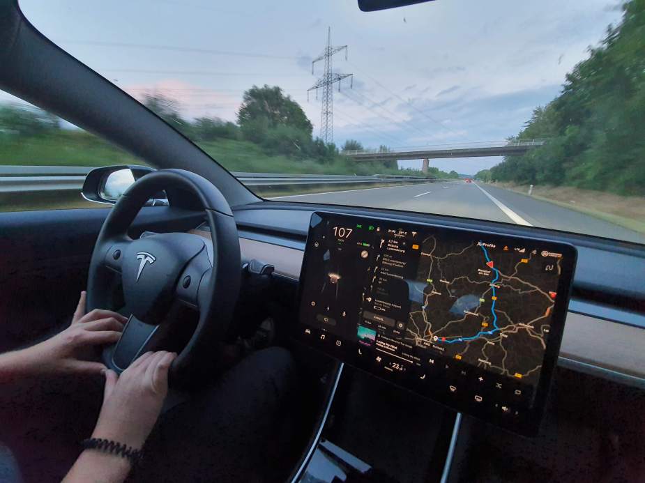 Wenn man dann doch mal komplett selbstbestimmt fahren will, bietet auch das kleinste Model 3, mit welchem wir unterwegs sind, dank 225kW (306 PS) Leistung genug Reserven für beeindruckende Zwischenspurts. Der große Elektro-Vorteil ist die Instant-Beschleunigung, die einen auch beim Standard Range Plus-Model mit jedem Druck auf’s Gaspedal regelrecht in den Sitz drückt. In 5,6 Sekunden ist das Model 3 von 0 auf 100, so schafft man es in der Stadt aus dem Stand in jede Verkehrslücke. Das macht bei Bedarf natürlich irre Spaß, wird im realen Verkehrsalltag aber dennoch eine eher untergeordnete Rolle spielen. Wer dauerhaft schnell fahren will, kommt mit jedem Elektroauto recht schnell an seine Grenzen. Unser Model 3 schafft zwar die 200 Stundenkilometer, aber die Reichweite schrumpft bei derartigen Geschwindigkeiten rasant auf unter 100 Kilometer zusammen.