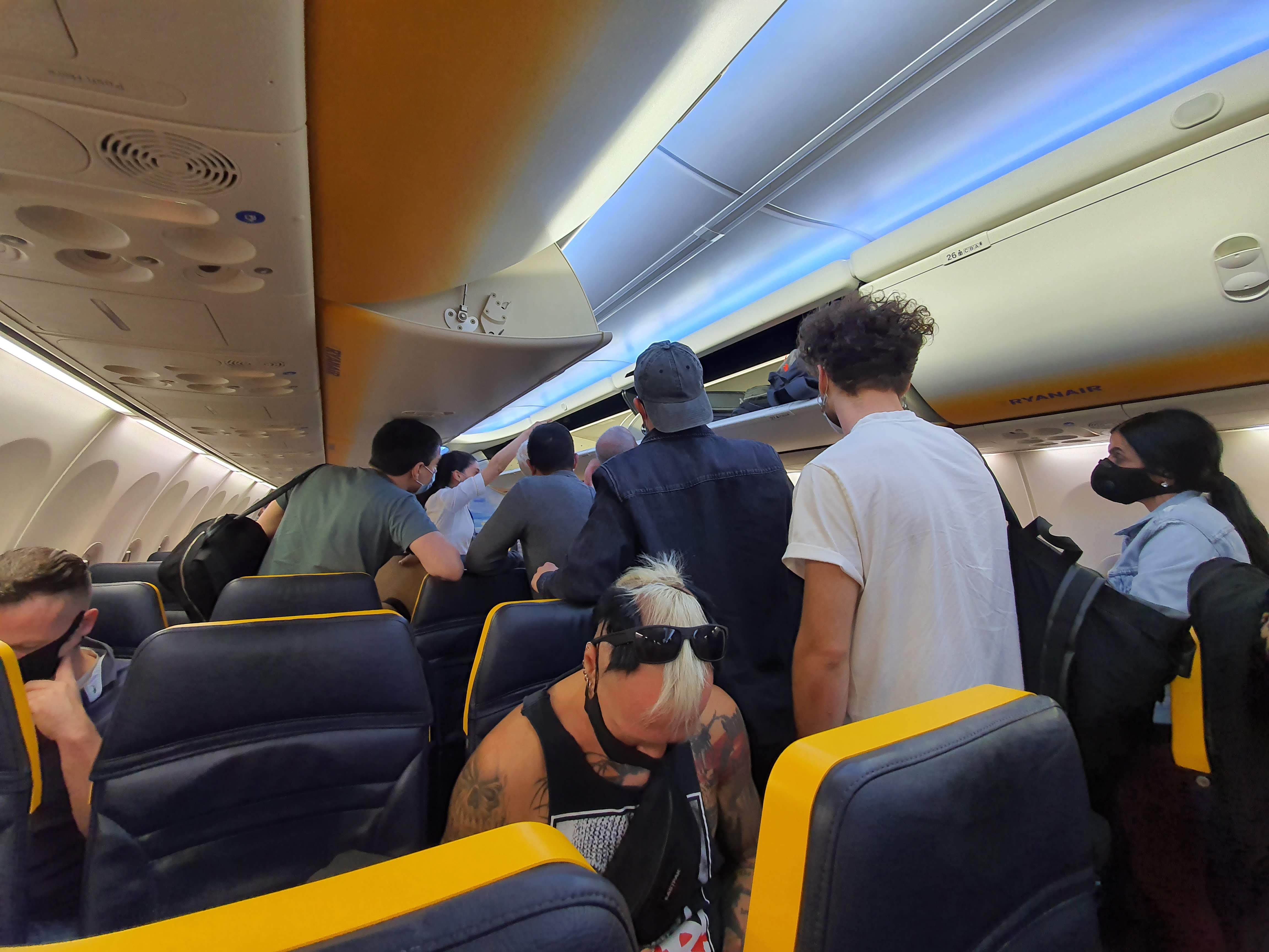 Nachdem wir durch die Security durchwaren, hatte immerhin ein Flughafen-Shop offen, wo wir uns eine Coke für den 2-Stunden-Flug kauften und anschließend im Gate-Bereich auf’s Boarding warteten. Die Bestuhlung waren zum Großteil entfernt worden und die Reisenden sammelten sich in Grüppchen. Die meisten versuchten halbwegs Abstand zu halten, aber spätestens als sich das gewohnt chaotische Ryanair-Boarding andeutete, verloren viele Passagiere die Pandemie aus den Augen. Wir versuchten unser bestes, die Abstände einzuhalten und sobald wir aus dem Terminal raus und auf dem Weg zur Ryanair-Boeing waren, funktionierte das auch wieder ganz easy.