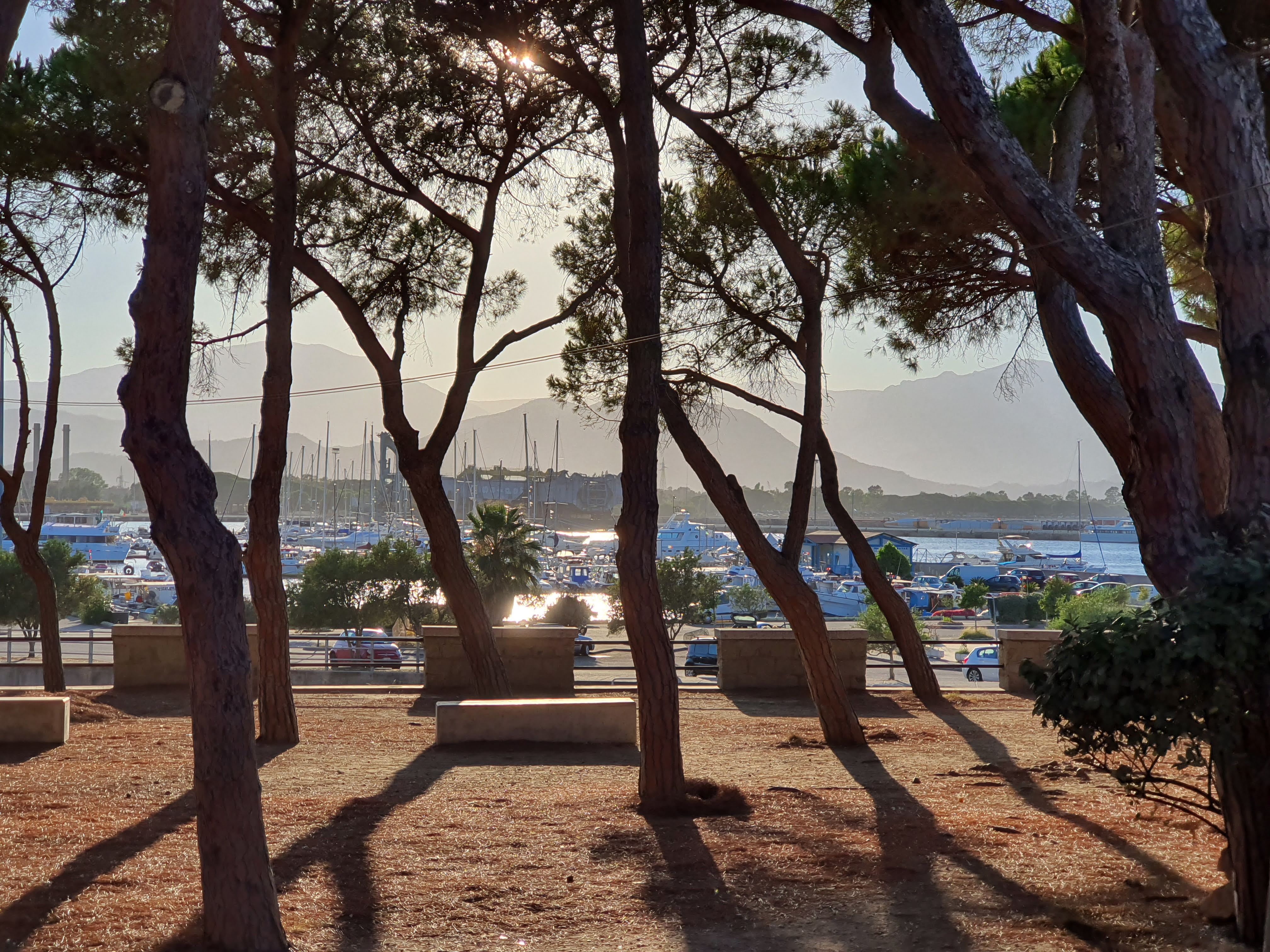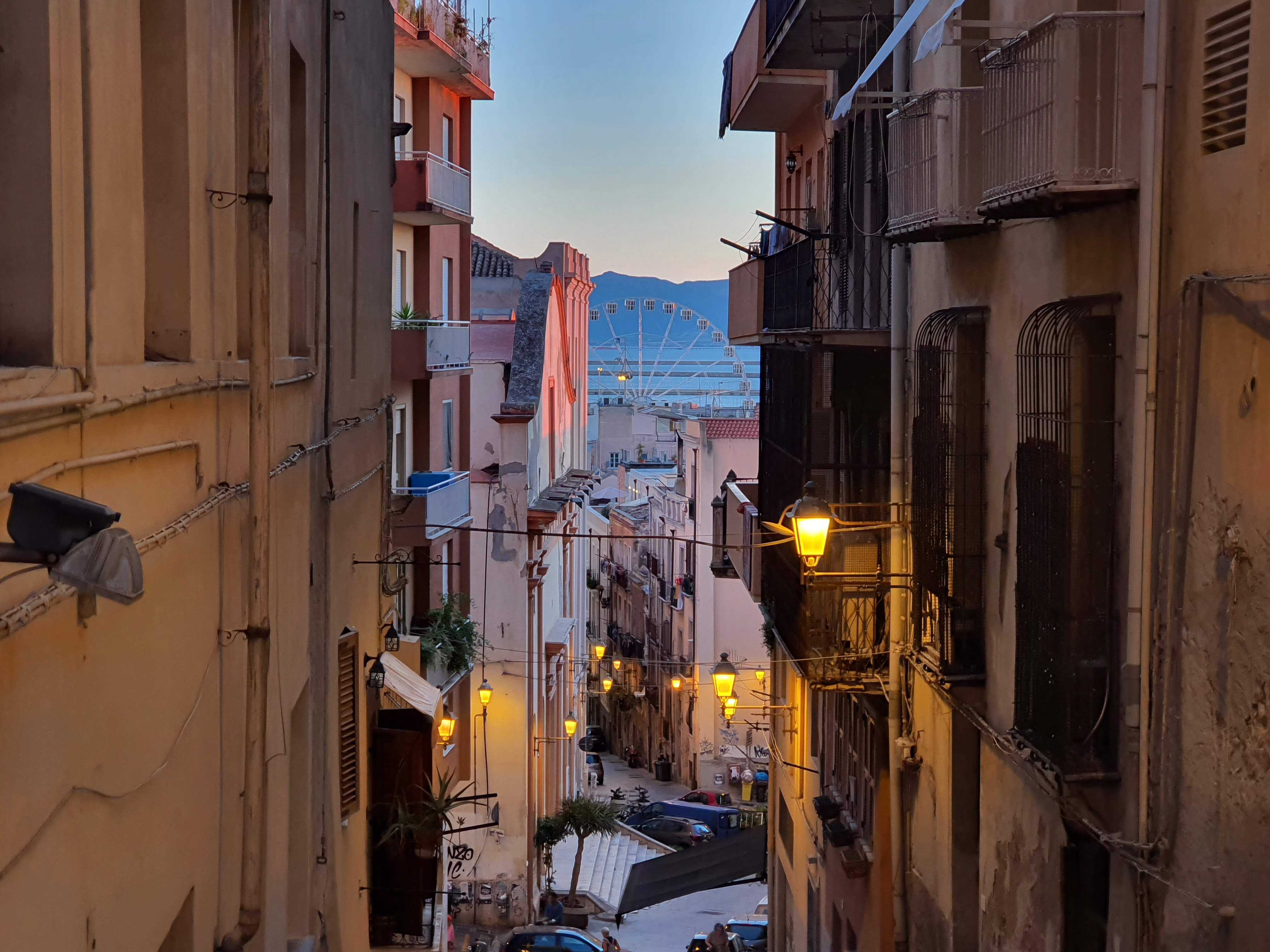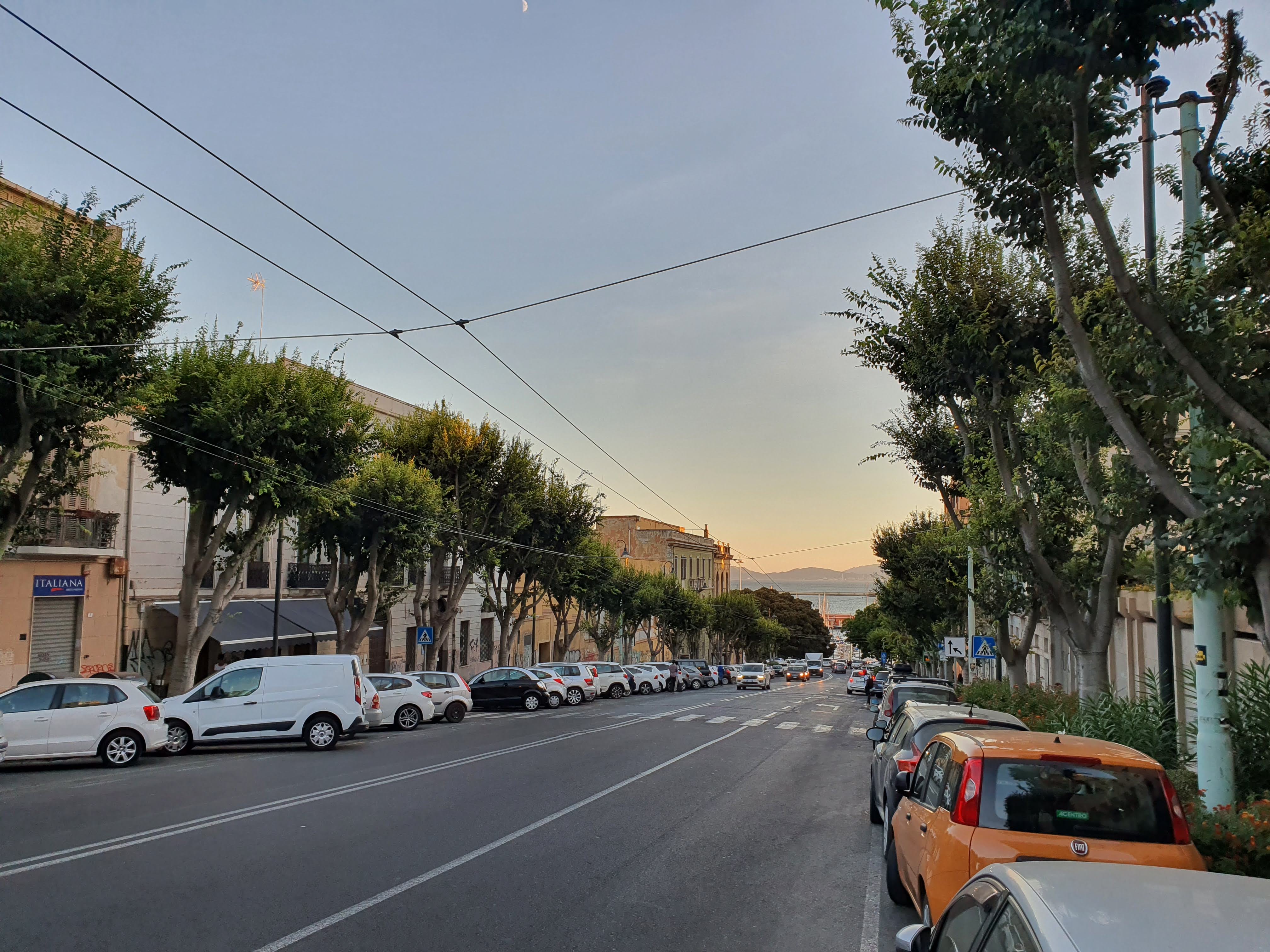 Raus aus dem Flieger, durch das ziemlich ausufernde Terminal-Gebäude von Cagliari mit erstaunlich wenig Corona-bedingten Kontrollen raus an die frische Luft, wo uns Sardinien mit wohlig-warmen 30 Grad empfing. Weil wir wegen Corona auf öffentliche Verkehrsmittel verzichten wollten, ging es mit einem Taxi in die Stadt, nach 10 Minuten standen wir beim Stadthotel Regina Margherita, unkomplizierter Check-In und dann recht schnell ins Bett, um am nächsten Tag gut ausgeschlafen durchstarten zu können.