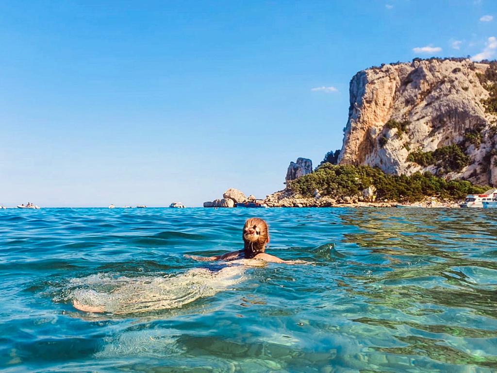 Wir verließen den kleinen idyllischen Fischerort und wollten unseren letzten Tag wieder in diesem türkis-blauen Wasser verbringen, was es uns so angetan hatte. Wenig später waren wir wieder an dem Strandabschnitt etwas südlich von Arbatax, an dem wir bereits vor zwei Tagen unterwegs waren. Dieses mal waren wir sogar so verrückt und mieteten uns zwei Strandliegen und machten tatsächlich das, über das wir sonst normalerweise die Nase rümpfen. Am Strand liegen, zwischendurch ins Wasser hüpfen, wieder am Strand liegen, wieder ins Wasser. Aber alles war einfach perfekt, die Sonne ballerte, das Wasser war angenehm abkühlend, aber trotzdem gut temperiert, wenig Wellengang,… und wir machten uns bereits Gedanken über unseren nächsten Urlaub. Was konnten wir anstelle von Island machen, was ließ Corona zu?