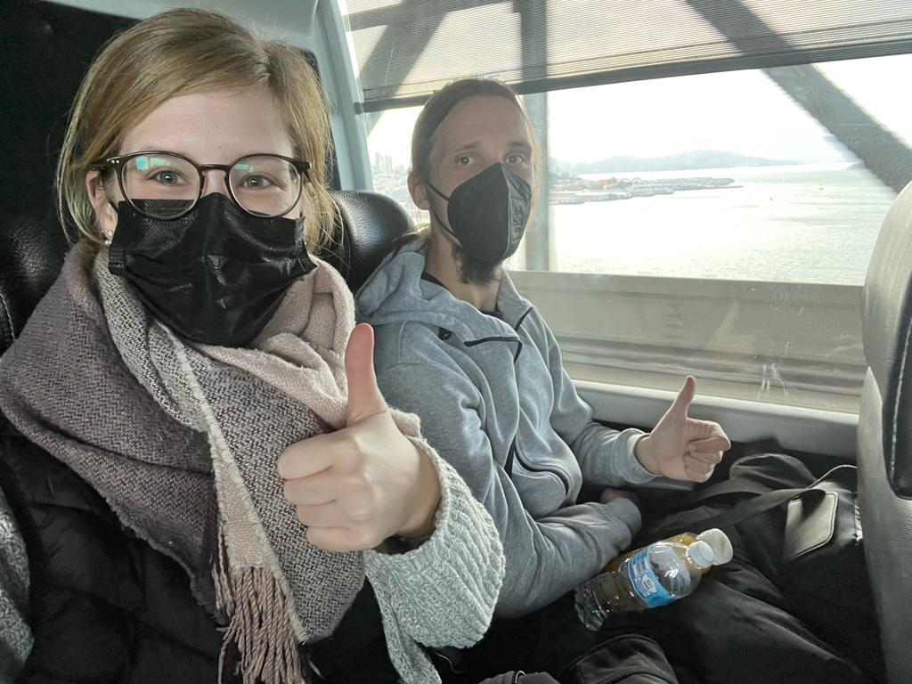 Von da an war der Workflow denkbar einfach. Der Bus kam um kurz nach 15 Uhr, eine äußerst freundliche Busfahrerin stieg aus, checkte unsere Tickets, wir luden das Gepäck ein und durften einsteigen.