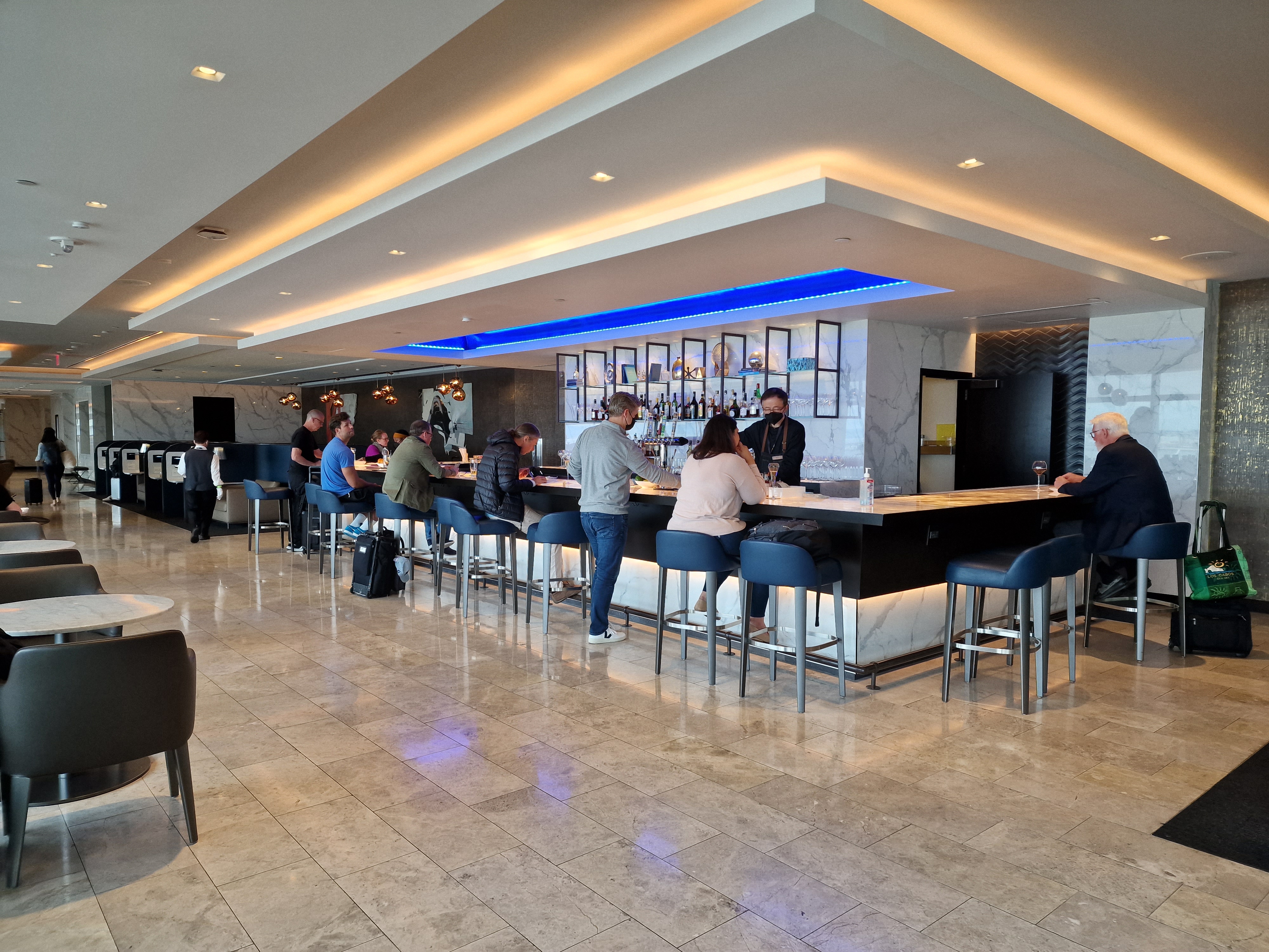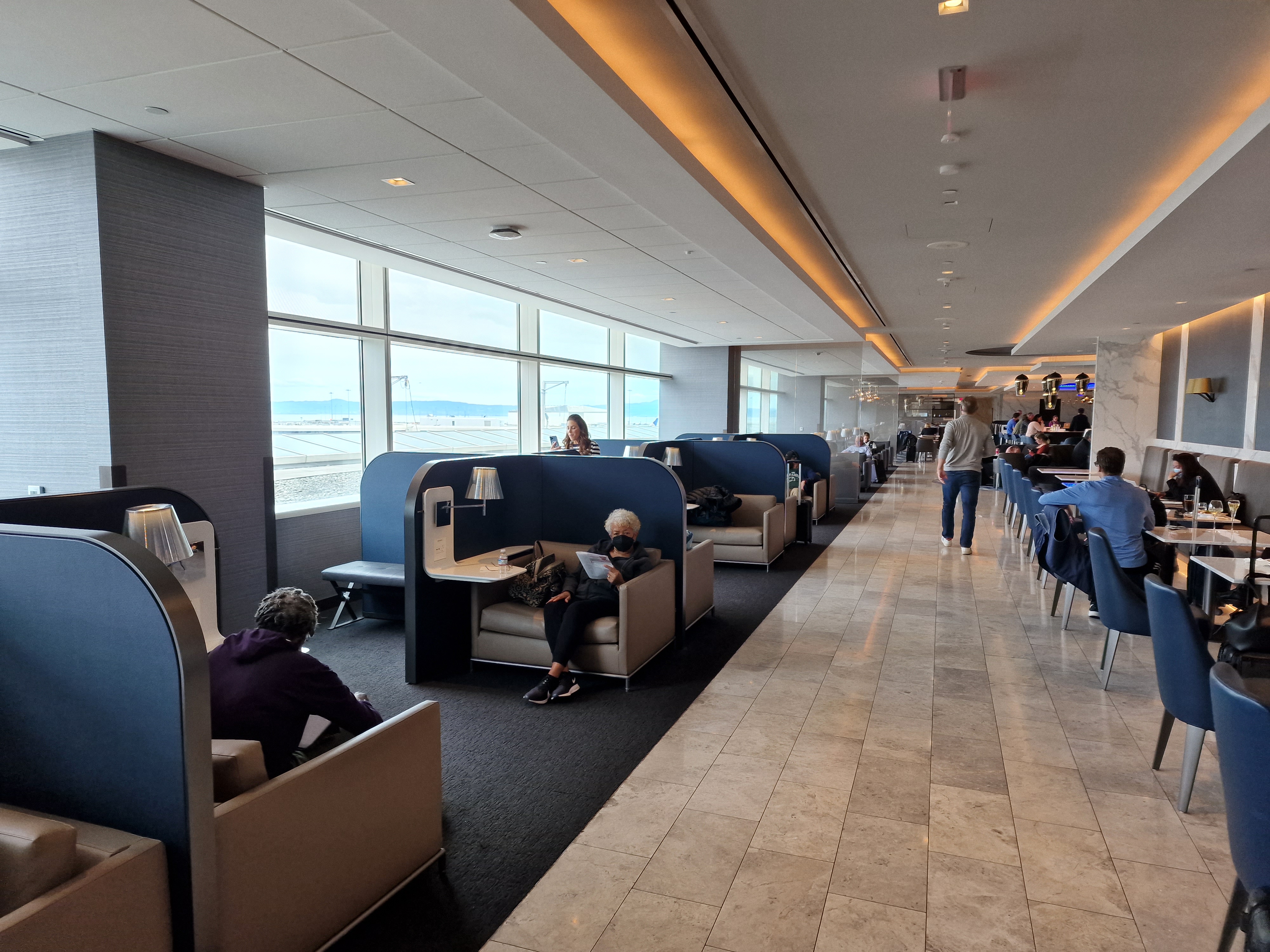 Mit einem Lufthansa-Business Class-Ticket hat man in San Francisco Zugang zur United Polaris-Lounge vom Star Alliance-Partner United. Lufthansa betreibt keine eigene Lounge in der Bay-City, was angesichts der verschwenderisch großen United-Lounge aber auch überhaupt kein Problem darstellt.